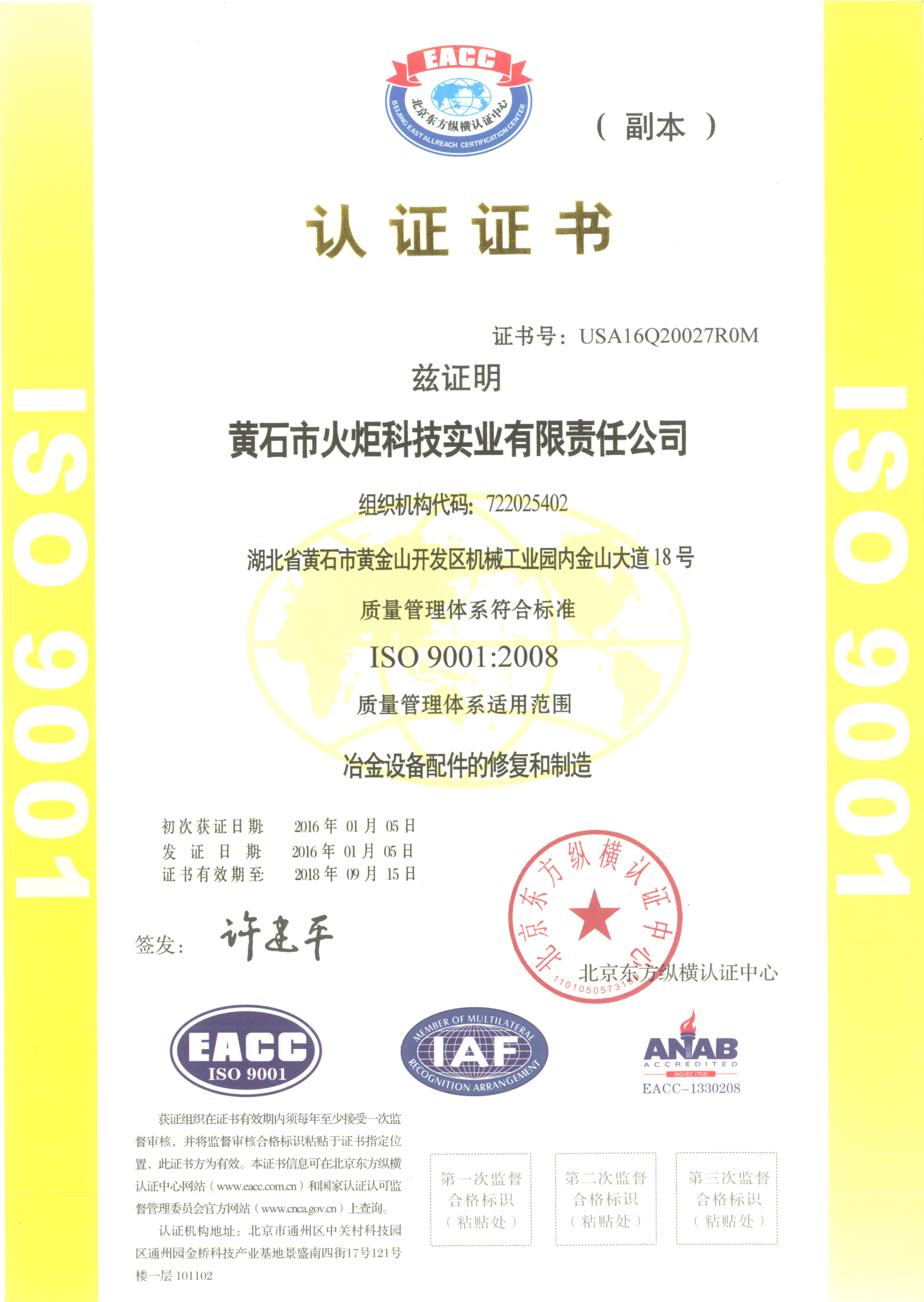 Certification certificate